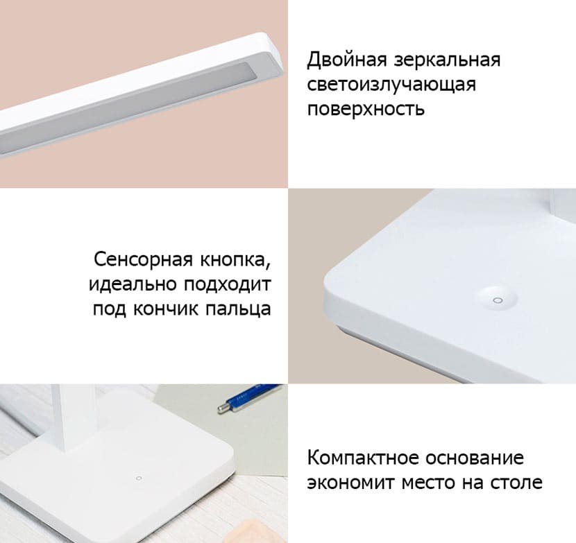 Настольная лампа Xiaomi Mijia LED Desk Lamp Lite с поворотным шарниром может осветить достаточно большую площадь. Три режима освещения удовлетворят потребности в освещении для любого занятия. Простое управление, понятное даже детям.